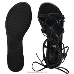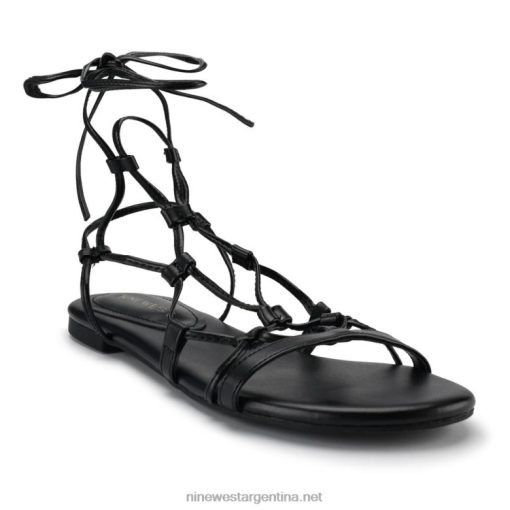 negro sandalias planas cruzadas en el tobillo con botones Nine West 0DDT066