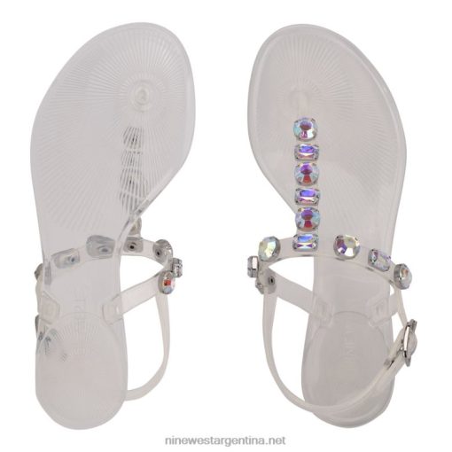 La sandalia de jalea con correa en T de enebro de Nine West es un zapato moderno y divertido, perfecto para vestir tu atuendo informal favorito. piedras preciosas de gran tamaño adornan la tira en T y añaden glamour a esta silueta clásica.