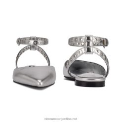 los ojales metálicos en la correa delgada del tobillo agregan un toque de rock and roll al brez puntiagudo plano.